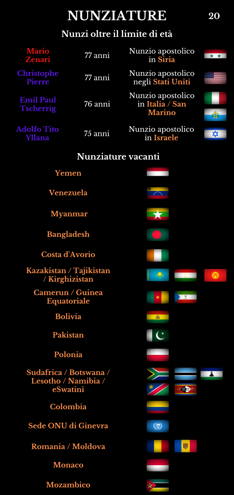 Per la prima volta, invece, i cardinali italiani non elettori sono il doppio di quelli elettori.